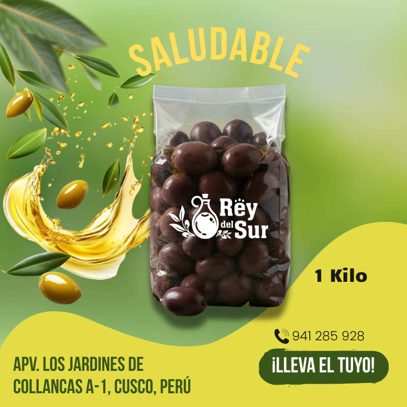 La presentación de 1 kg es perfecta para familias, negocios gastronómicos y quienes buscan un producto rendidor sin perder frescura ni sabor. Además, nuestras aceitunas son un alimento natural, nutritivo y saludable, con el punto exacto de maduración para ofrecerte una experiencia deliciosa en cada bocado.